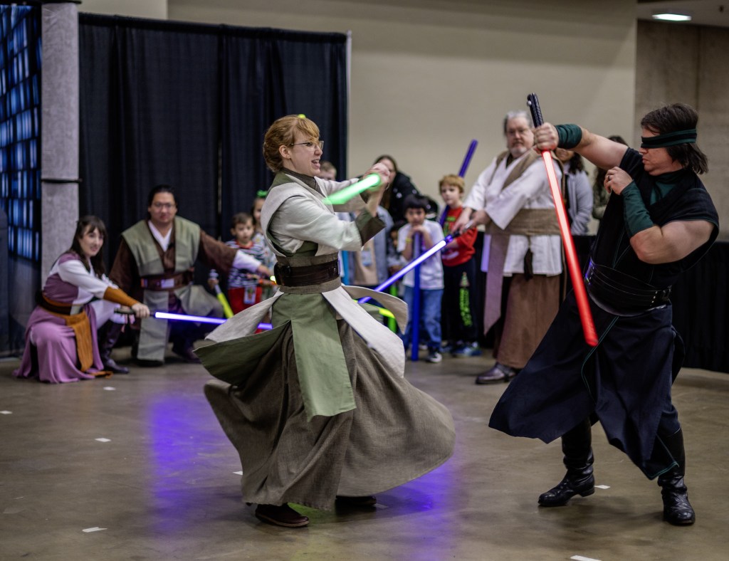 Saber Guild is primarily a performance group. We use a broadsword-based martial arts system to develop choreographed, high energy lightsaber performances. Additionally, our group has an interactive element where we teach kids (and adults) the basics of our fight system. In a leadership capacity, my primary roles have involved event coordination, maintaining our rosters, developing digital media, organizing club purchases, inter-club relations, and supporting our costuming officer and local stage director.